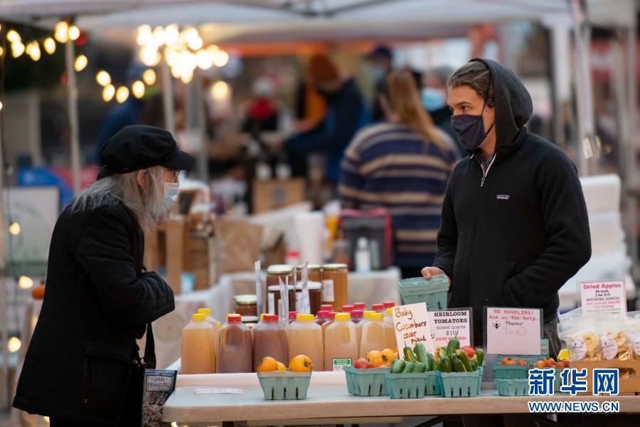 11月12日,一名女子在美国华盛顿的一处户外市场购物。新华社记者 刘杰 摄