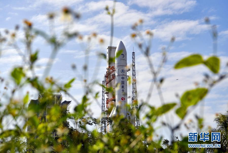 这是11月17日在中国文昌航天发射场拍摄的长征五号遥五运载火箭。新华社记者 郭程 摄