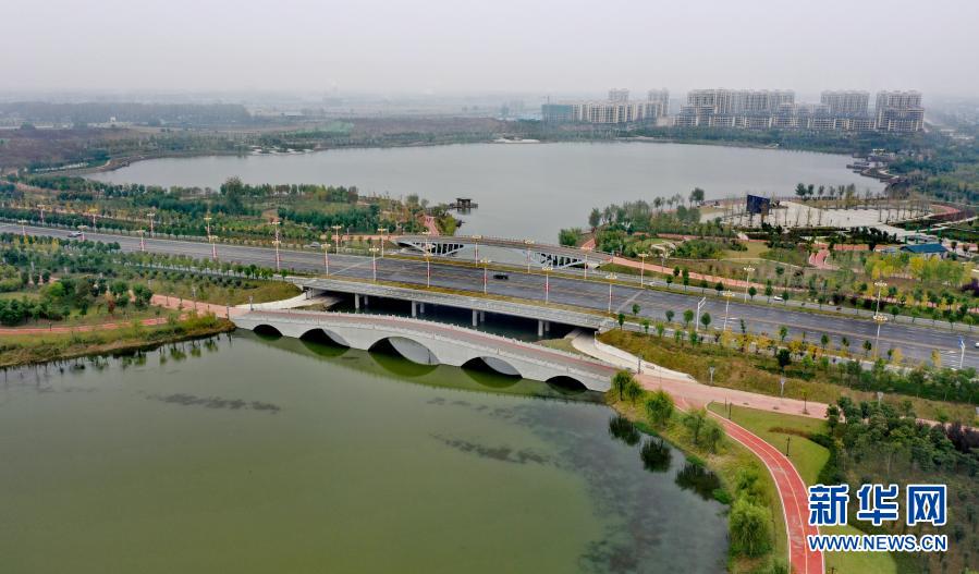 驻马店市新蔡县“五湖四带”生态水系景观(10月20日摄)。新华社发
