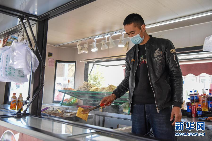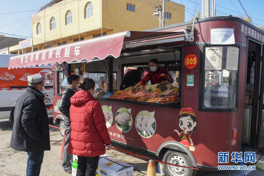 新华社乌鲁木齐11月20日电(记者张钟凯、丁磊)午饭时间,在新疆和田地区墨玉县扎瓦镇客运站旁,一辆枣红色餐车飘出阵阵肉香。烤鸡柳、炸鸡脖、炸鸡排……琳琅满目的美食吸引了不少食客。