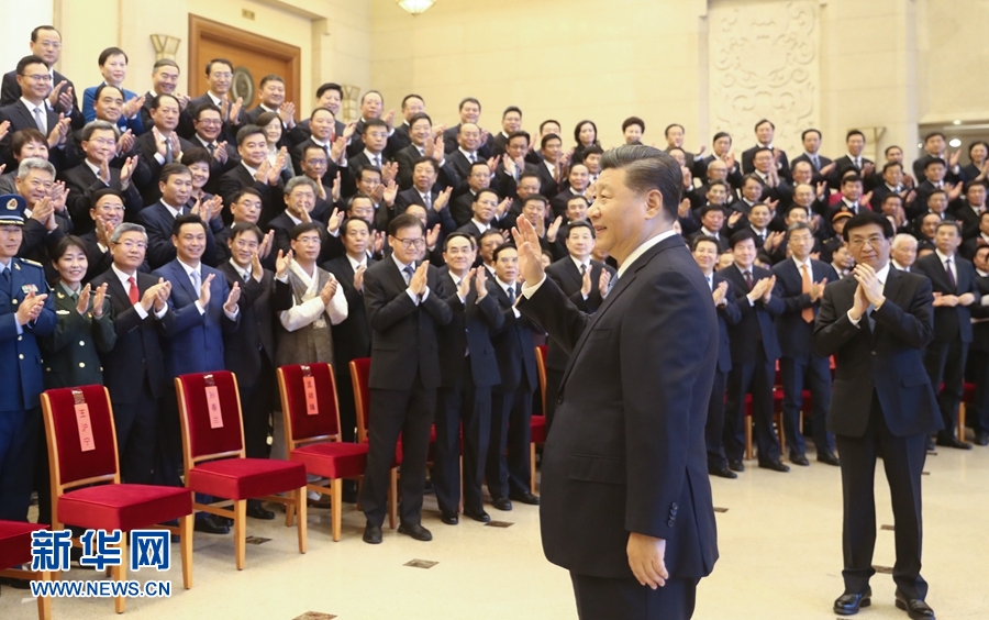 上午10时,习近平等来到京西宾馆会议楼前厅,全场响起热烈掌声。习近平等走到代表们中间,同大家亲切交流并合影留念。