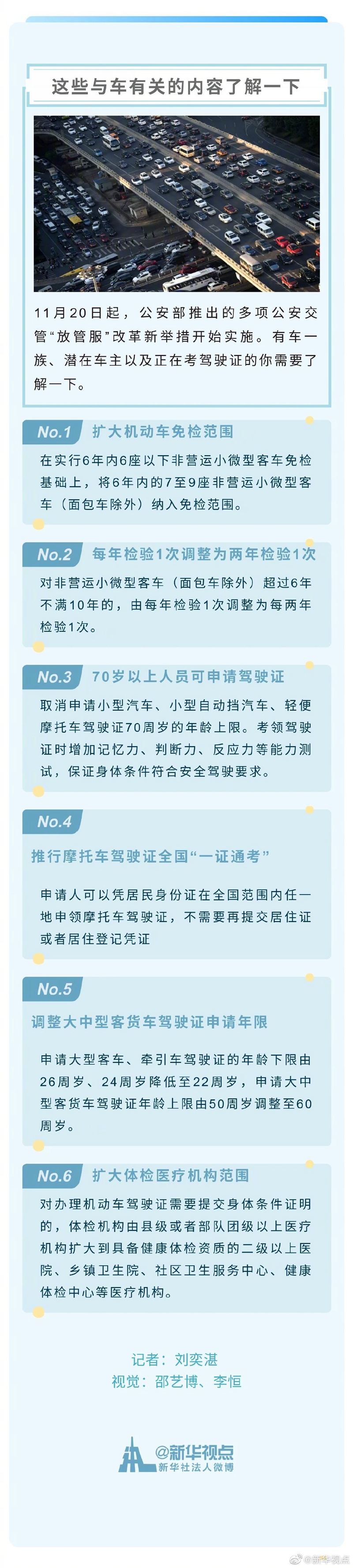 11月20日起,公安部推出的多项公安交管“放管服”改革新举措开始实施。有车一族、潜在车主以及正在考驾驶证的你需要了解一下。