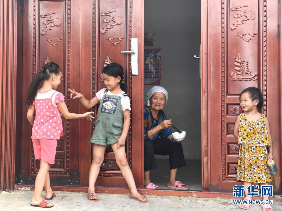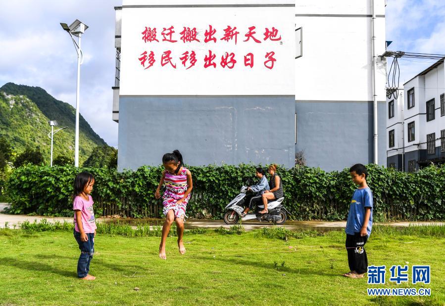 在广西都安瑶族自治县下坳镇车家庄易地扶贫搬迁安置新区,小朋友在玩耍(8月18日摄)。新华社记者 周华 摄