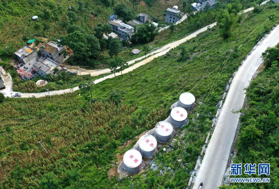 这是广西都安瑶族自治县永安镇安兰村新建的水柜(7月22日摄,无人机照片)。新华社记者 周华 摄