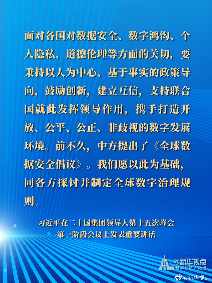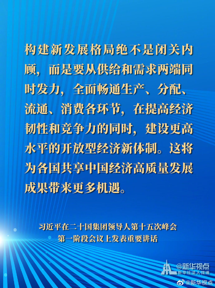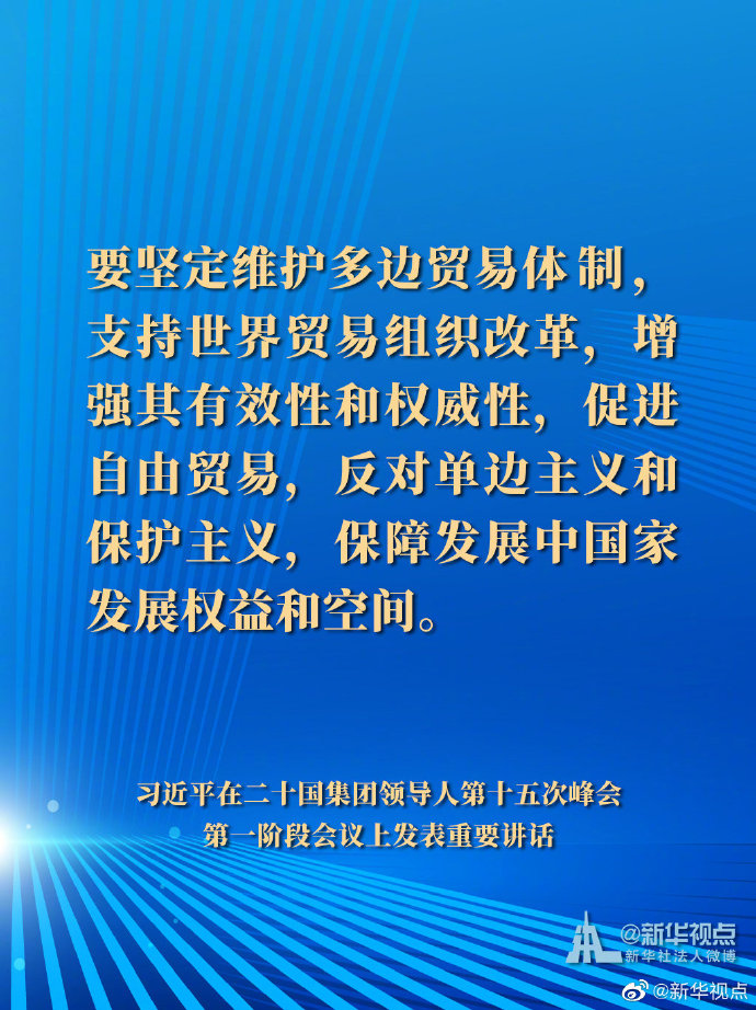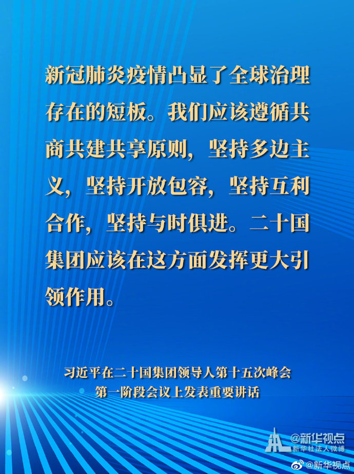 习近平在二十国集团领导人第十五次峰会第一阶段会议讲话要点
