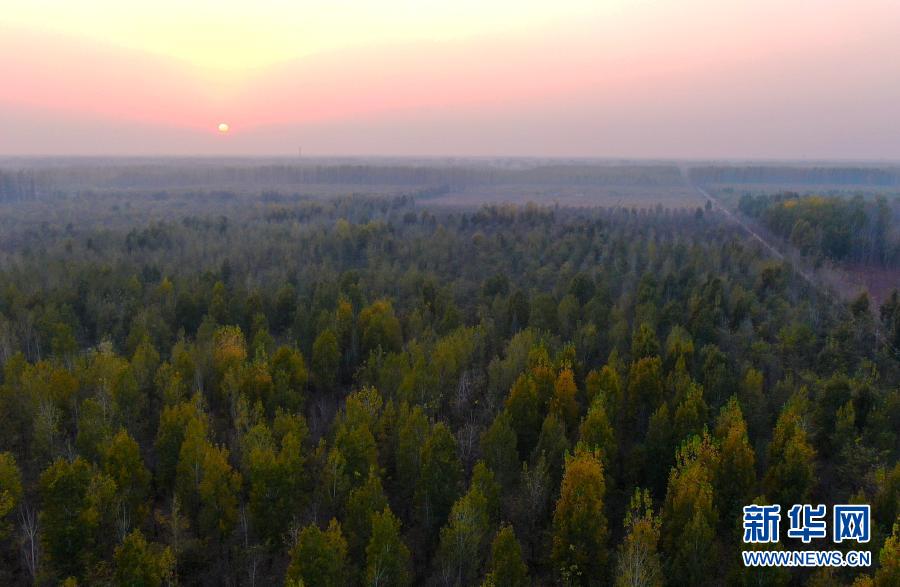这是11月6日在河南省商丘市民权县拍摄的民权林场(无人机照片)。新华社记者 郝源 摄