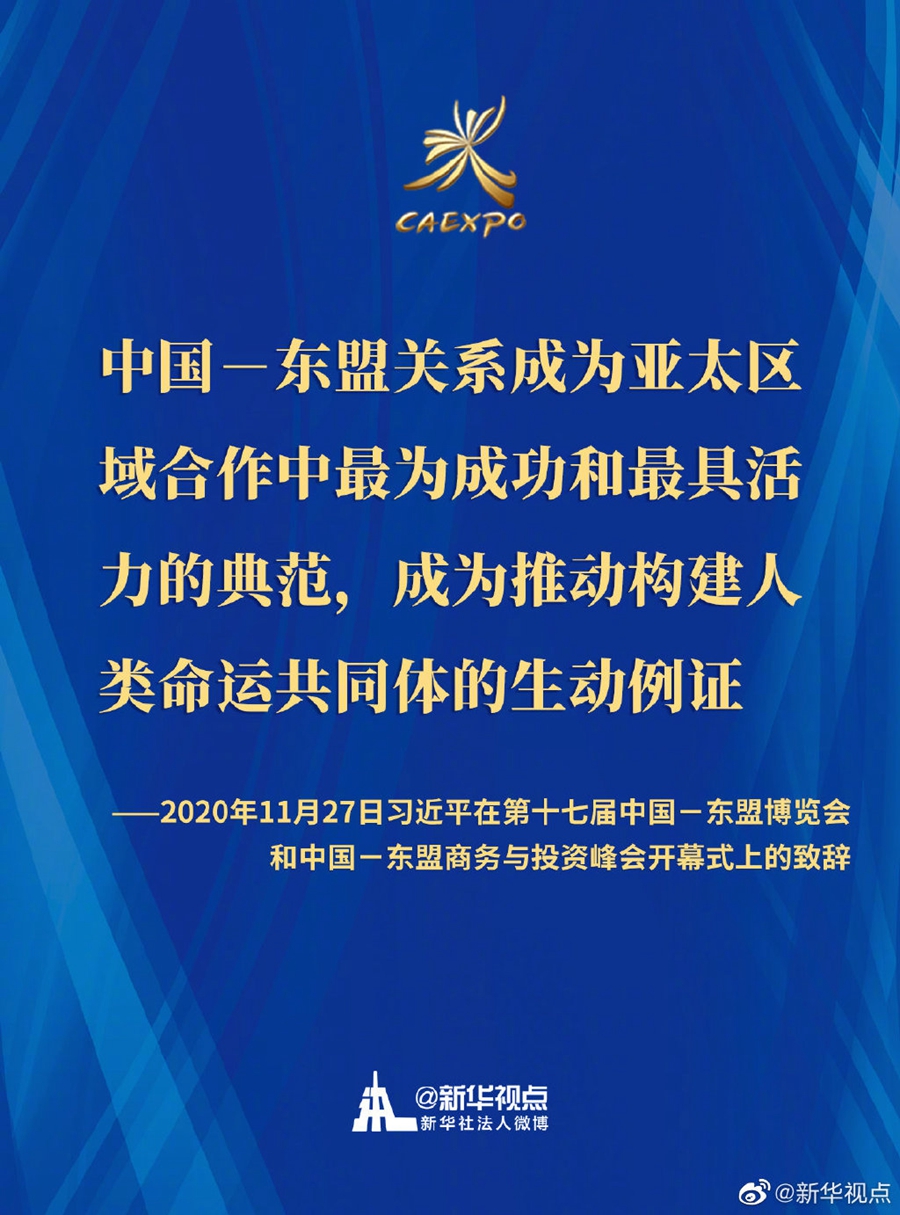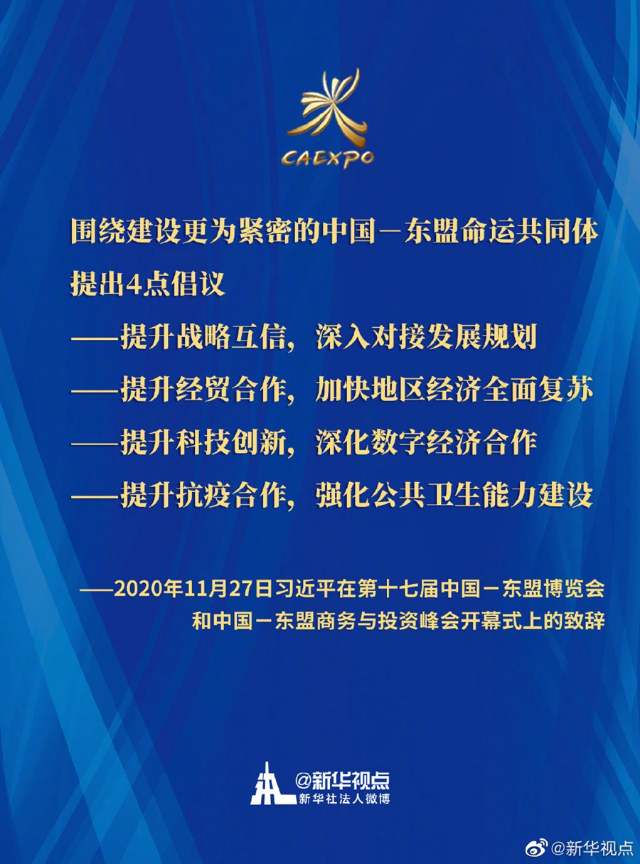 第十七届中国-东盟博览会和中国-东盟商务与投资峰会开幕式11月27日在广西南宁举行。国家主席习近平在北京以视频方式发表致辞。一起来划重点⬇️