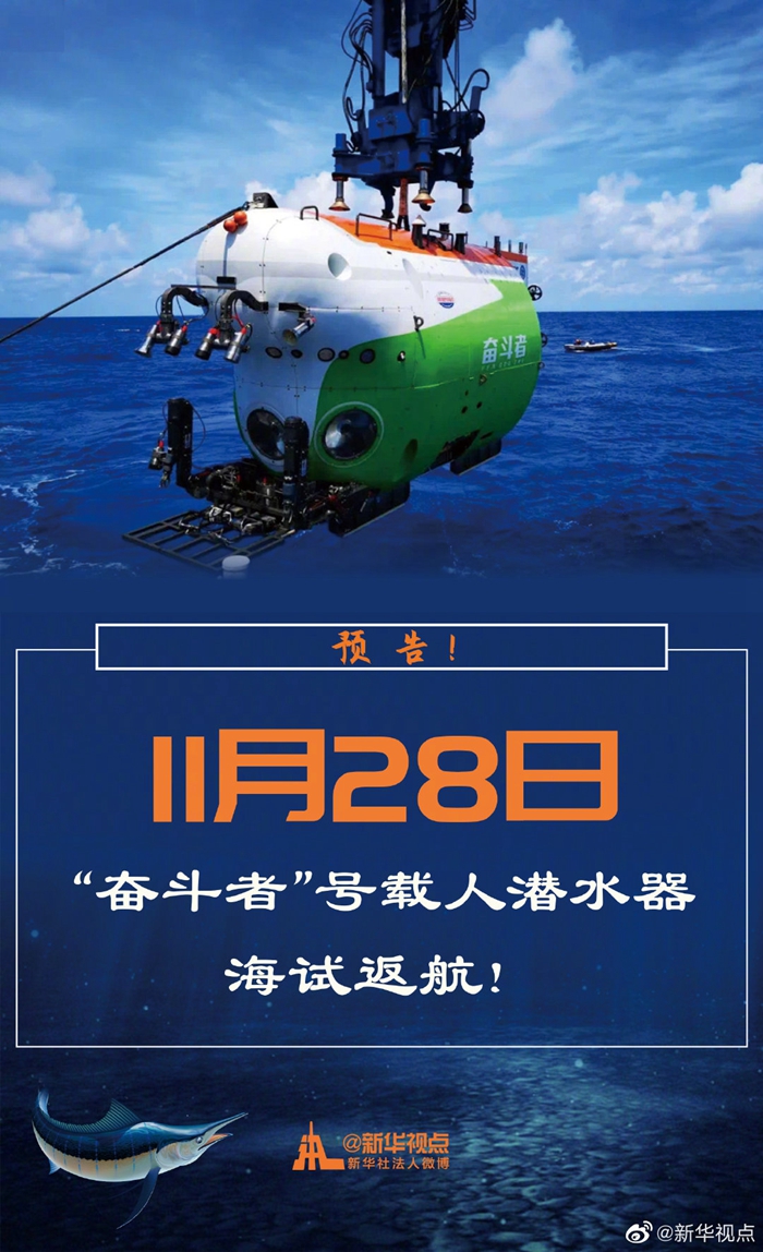 预告!11月28日“奋斗者”号载人潜水器海试返航-新华网