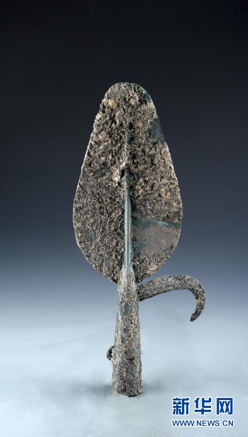 这是河南省淅川县下王岗遗址出土的龙山文化时期铜矛(资料照片)。新华社发(中国社会科学院考古研究所供图)