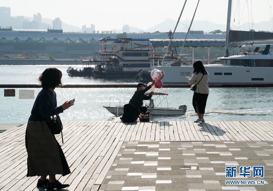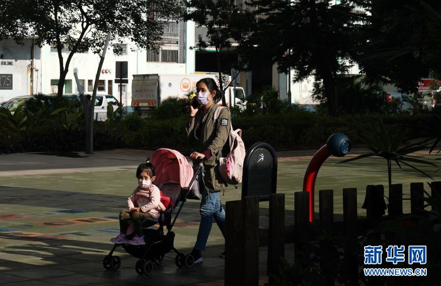 12月3日,在香港观塘海滨花园,市民戴口罩出行。新华社记者 李钢 摄