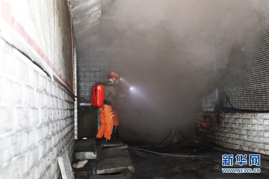 12月4日晚,在重庆永川区吊水洞煤矿,救援人员在煤矿井口处测量烟雾中一氧化碳浓度。新华社记者 黄伟 摄