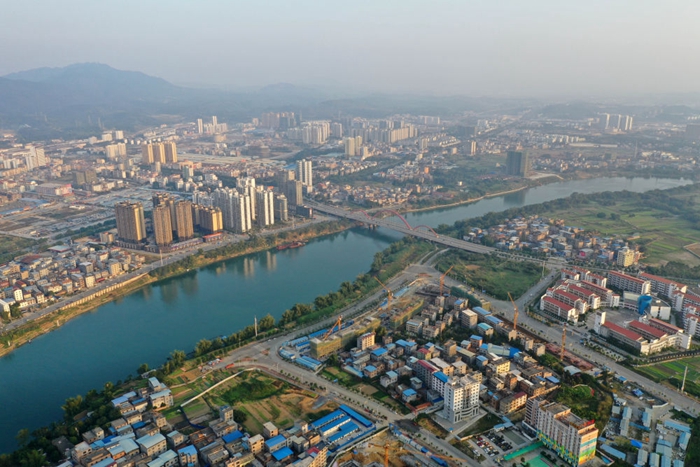 广西百色市城区新貌(2019年8月29日摄,无人机照片)。新华社记者 曹祎铭 摄