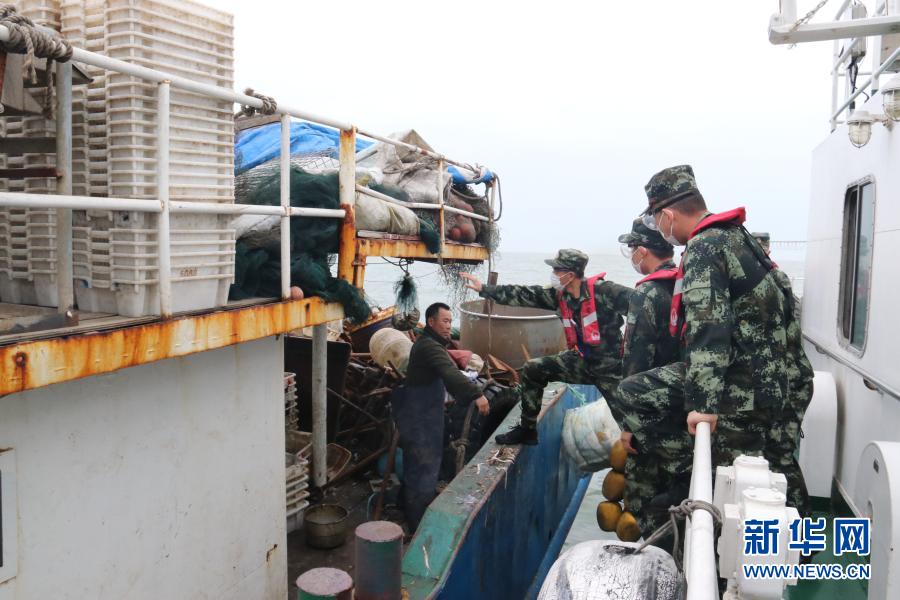 海警执法员登船检查(5月8日摄)。新华社发(江壮志 摄)