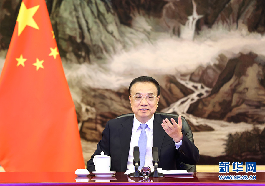 12月8日,国务院总理李克强在北京人民大会堂视频会见国际货币基金组织总裁格奥尔基耶娃。 新华社记者 庞兴雷 摄