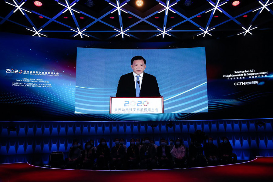 怀进鹏在致辞中表示,公众科学素质是实现全球良好治理的社会基石。只有最广泛的人具备科学素质,才能让公众在经济发展和社会进步中有能力参与、承担、分享,才能更好地应对疫情等复杂的全球性挑战,实现科技与经济、科技与社会、科技与文化协同发展,实现全球良好治理,实现人类可持续发展。全球经济社会发展和民生改善比过去任何时候都更加需要科学技术解决方案,科技组织和科技界应坚持全球一体、平等尊重、合作互助,以引领科学、引领社会、引领未来作为共同理念和价值追求,推动构建以“开放、信任、合作”为价值共识的科技共同体,在全球治理体系改革中发挥引领作用。