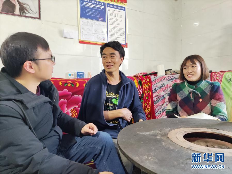 11月12日,云南省镇雄县以古镇岩洞脚村驻村第一书记郭登会(右)和扶贫队员到村民赵庆元(中)家里走访。新华社记者 林碧锋 摄