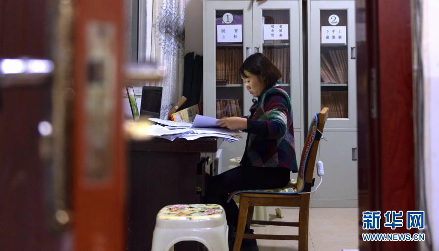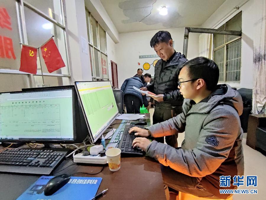 11月11日晚,云南省镇雄县以古镇岩洞脚村驻村扶贫队员在村委会工作。新华社记者 林碧锋 摄
