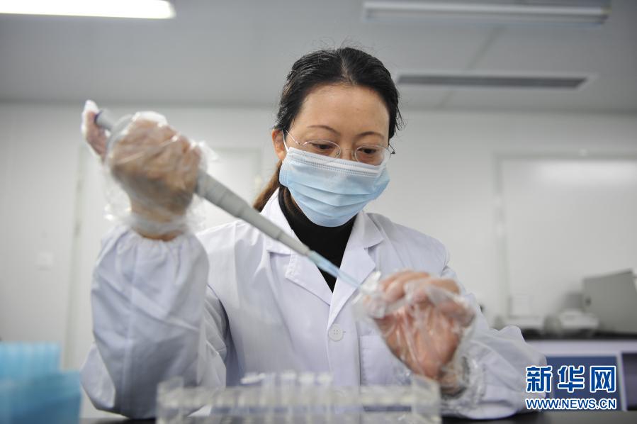 长春市公安局司法鉴定中心“DNA实验室”法医冯震使用“微量物证粘取器”提取DNA(2014年11月20日摄)。新华社记者 王昊飞 摄