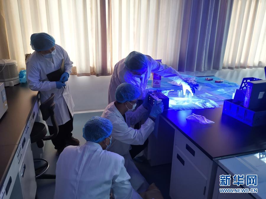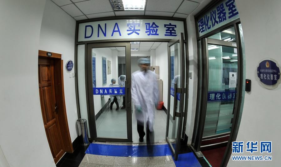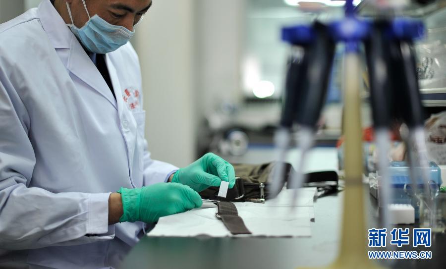 山东省滨州市公安局民对“2004.11.24”故意杀人案物证进行DNA检材提取(资料照片)。新华社发(公安部刑侦局供图)
