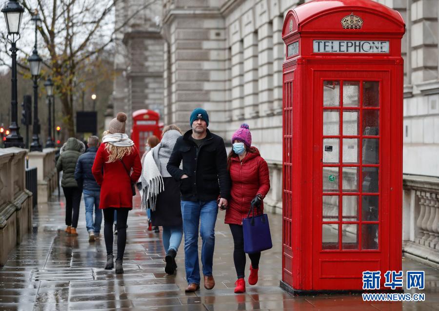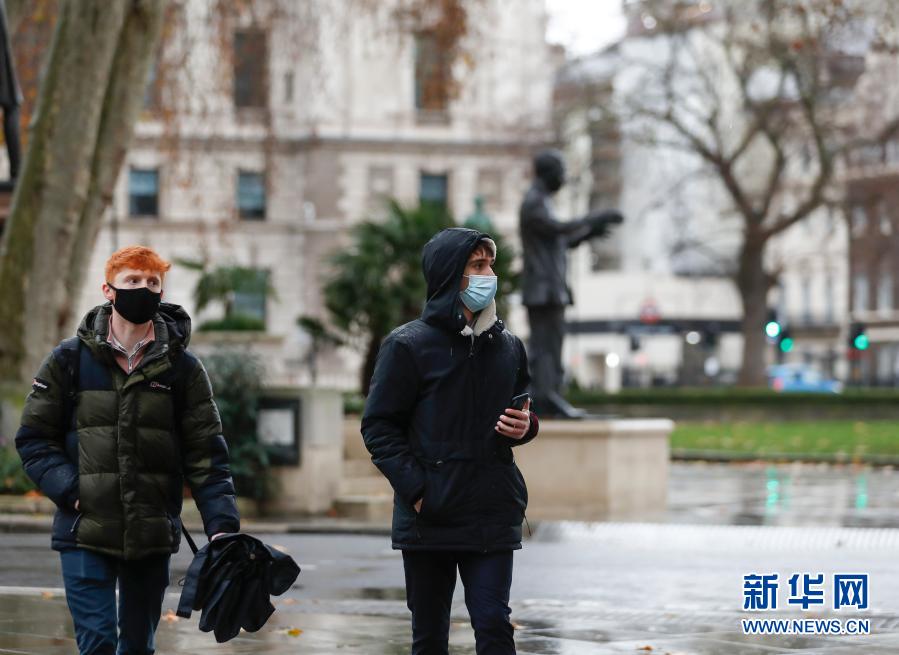 12月13日,戴着口罩的人们在英国伦敦议会广场附近行走。新华社记者韩岩摄