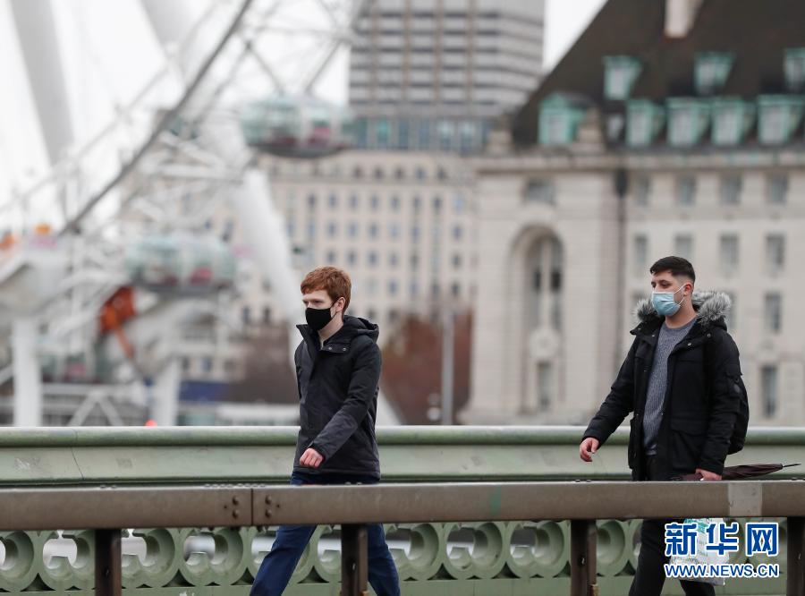 12月13日,戴着口罩的人们在英国伦敦的威斯敏斯特桥上行走。 新华社记者韩岩摄