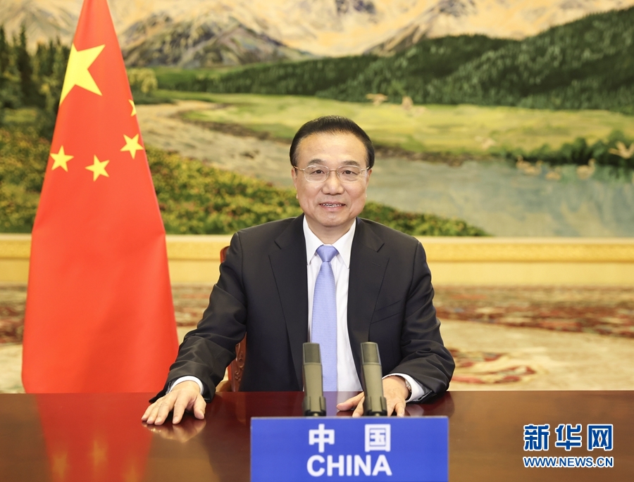 12月14日,国务院总理李克强在《经济合作与发展组织公约》签署60周年纪念活动上发表视频致辞。 新华社记者 庞兴雷 摄