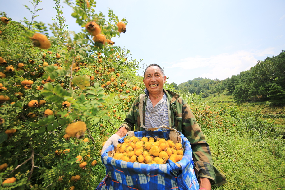 刺梨产业正成为群众增收致富的好帮手,图为贵州省黔南州贵定县昌明镇火炬村村民喜迎刺梨丰收,脸上挂满丰收的喜悦。石银超 摄