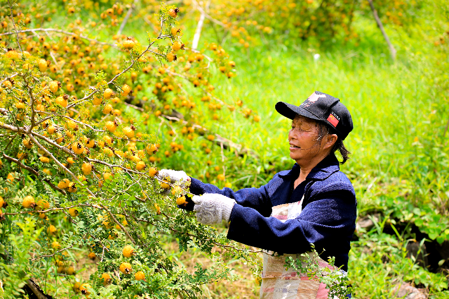 每年8月中旬到9月中旬是刺梨成熟的时节,图为贵州省黔南州贵定县昌明镇火炬村村民正忙着进行刺梨采摘。石银超 摄