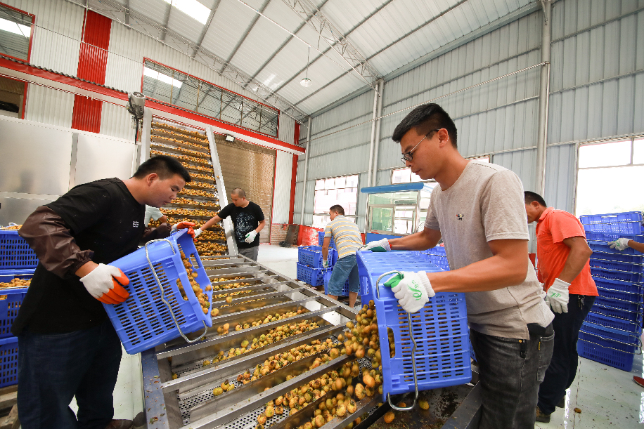 贵州省黔南州贵定县刺梨加工厂里,工人正忙着进行刺梨加工。石银超 摄
