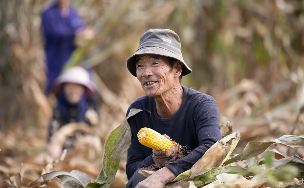 甘肃会宁县玉米种植户喜迎丰收季。