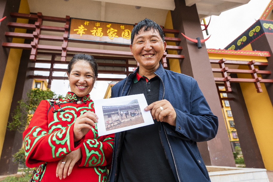 云南省丽江市宁蒗县彝族群众沙阿布夫妇受益于易地扶贫,喜迁“幸福家园”。孙权伟 摄