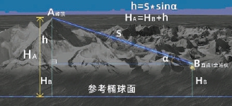 1847年,英属印度测量局在离珠峰300多公里外的恒河平原上,利用三角高程测量方法对珠峰高度进行了首次测量,测得高程为8778米。所谓三角高程测量方法,就是在位于山脚的地面测站架设光学测量仪器,专业测量人员照准珠峰峰顶雪面,测量地面测站到峰顶的距离,再测量峰顶的高度角,也就是观测视线与水平面之间的夹角,最后按照三角函数关系计算出珠峰高度。