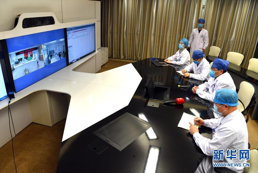 河南省人民医院专家团队在互联智慧分级诊疗医学中心为范县人民医院提供远程会诊(2月1日摄)。