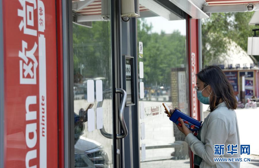 市民扫码进入北京丰台区一家无人超市(5月13日摄)。