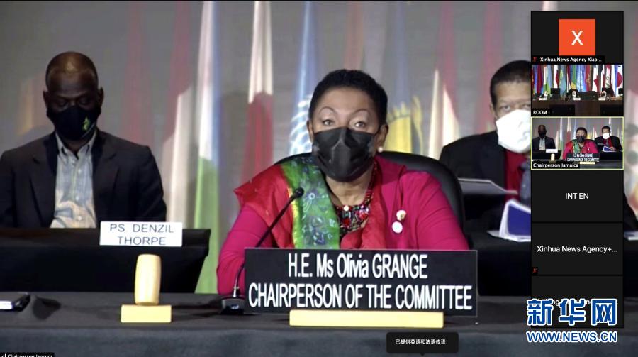 这张12月18日的视频截图显示的是,联合国教科文组织保护非物质文化遗产政府间委员会主席奥利维娅·格兰奇在法国巴黎参加线上视频会议。新华社发