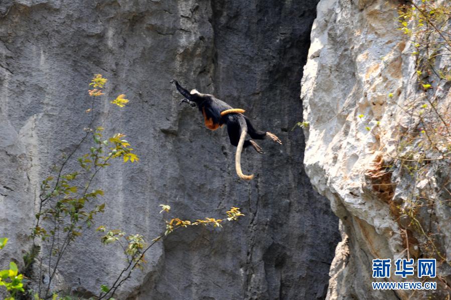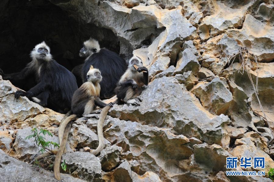 “石山精灵”又名白头叶猴,是我国特有的国家一级重点保护野生动物,种群数量稀少,主要分布在崇左市左江和明江之间不足200平方公里的喀斯特石山地区。