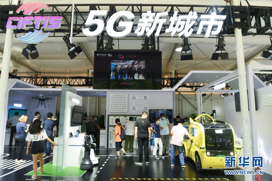观众在2020年中国国际服务贸易交易会5G通信服务专题展区参观(9月7日摄)。新华社记者 鲁鹏 摄