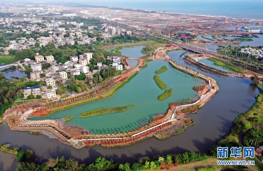 这是海口市江东新区芙蓉河综合治理工程(11月6日摄,无人机照片)。新华社记者 郭程 摄