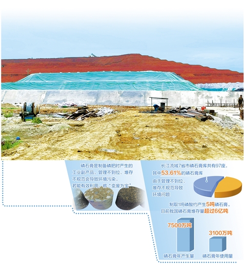 “虽然磷元素在植物生长过程中起到不可或缺的作用,但磷石膏中含有大量的磷和氟杂质,如果磷石膏堆填不规范会造成严重污染。”中国建材联合会石膏建材分会秘书长杨再银告诉经济日报记者,2018年上半年统计数据显示,在长江经济带国控断面中,总磷指标超标的断面占全部超标断面的56%,总磷已成为长江的首要污染物。值得关注的是,磷石膏堆填问题不只发生在长江流域,在云南、贵州等西南地区省份同样存在。如云南省对区域内8个磷石膏库整治制定了时间表,要求今年底前磷石膏库渗滤液得到有效收集处理,全部不外排。