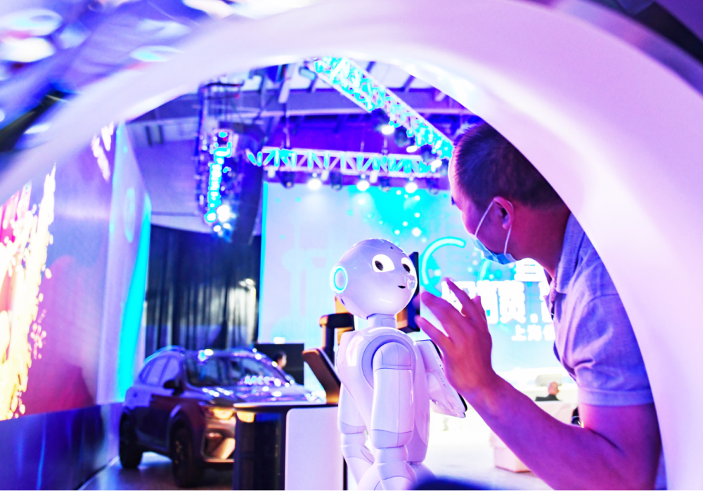 5月17日,上海信息消费云峰汇现场的智能机器人