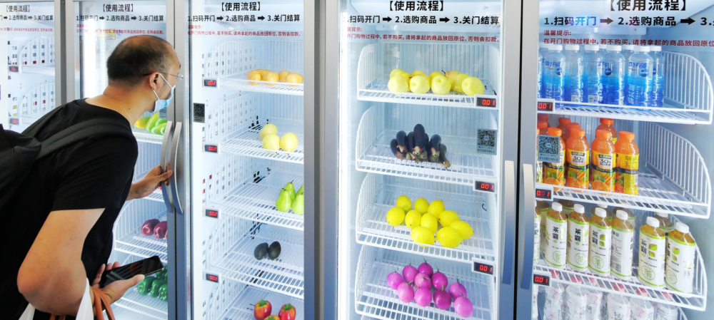 8月3日,广州,智能零售、生鲜科技设备展上生鲜无人设备