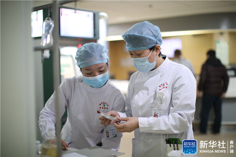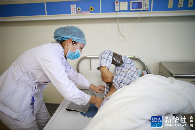 ↑12月17日,贵州医科大学附属医院护士叶青(左)在骨科病房工作。新华社记者 刘续 摄