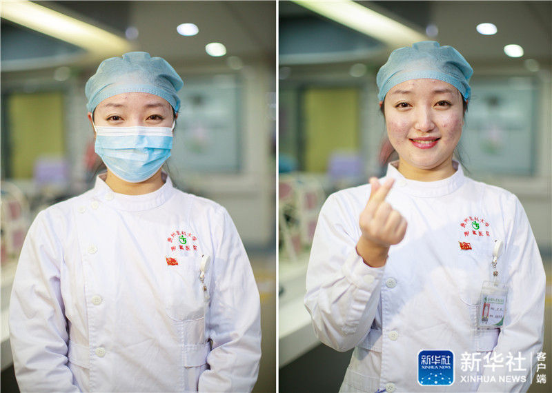 ↑拼版照片左图:3月8日,武汉体育中心方舱医院正式休舱,国家紧急医学救援队(贵州)队员叶青与康复患者分别时落泪(新华社记者 肖艺九 摄);右图:12月17日在贵州医科大学附属医院拍摄的护士叶青(新华社记者 刘续 摄)。新华社发