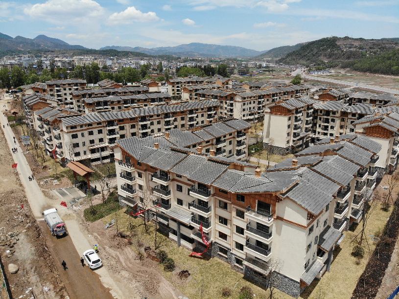 2020年5月13日,俯瞰四川省凉山州昭觉县易地扶贫搬迁县城集中安置点。当日,该县阿土列尔村31户村民带着行李下山,集中搬迁至安置点新家。阿土列尔村因位于垂直落差上千米的陡峭悬崖上,曾经村民上下山都要在岩壁上攀爬,从而被称为“悬崖村”。5月14日前,全村84户建档立卡贫困户将陆续搬进县城新家。张浪 摄