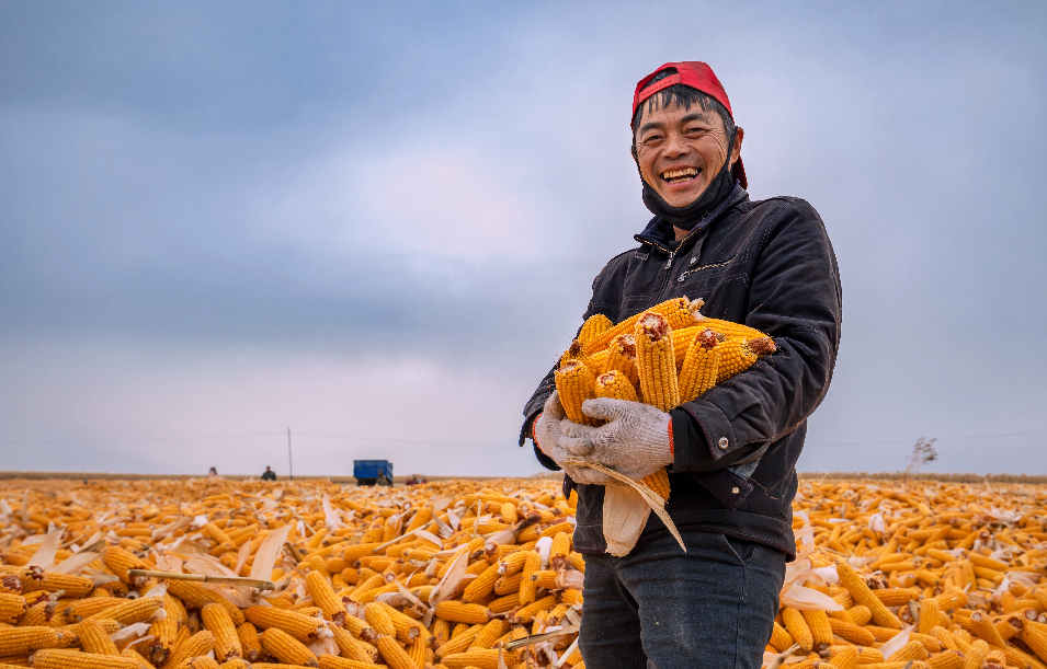 黑龙江省七台河市勃利县永久村党支部积极利用“社村企”平台帮助贫困户销售农产品。图为农户品尝丰收的喜悦。 赵博 摄