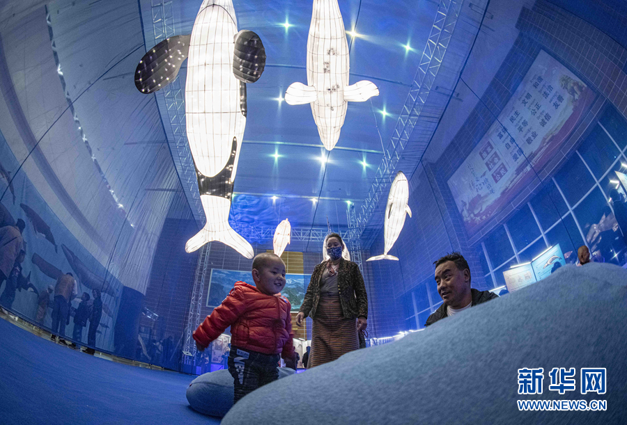 人们在西藏自治区自然科学博物馆参观《鲸奇世界》巡展(10月30日摄)。新华社记者 晋美多吉 摄