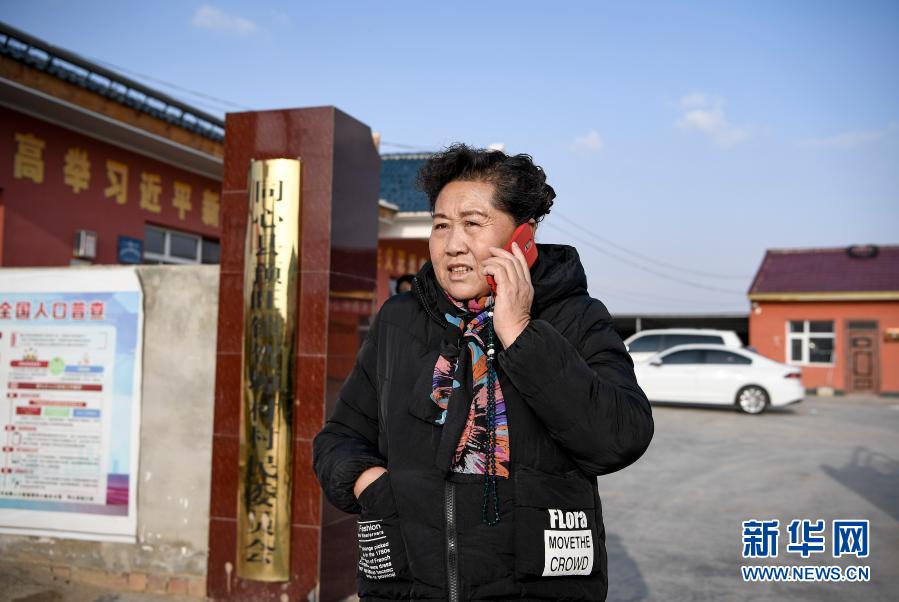 在贺家塬村新村部前,得知有村民生病住院,丁海燕打电话问询情况(10月28日摄)。 新华社记者 冯开华 摄