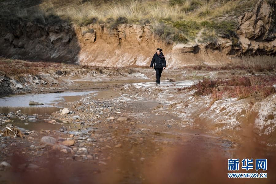 贺家塬村以前没有像样的路,沿河沟的小路经常被雨水冲毁。这是丁海燕走在贺家塬村的老路上(10月28日摄)。 新华社记者 冯开华 摄