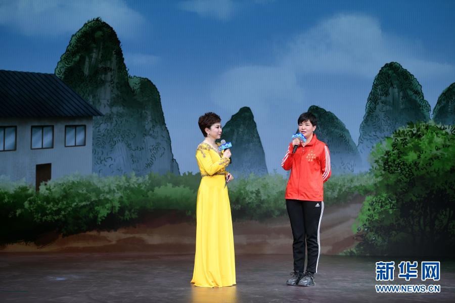 这是“带着家人去扶贫”毛鑫(右)出席颁奖典礼。新华社记者 金良快 摄