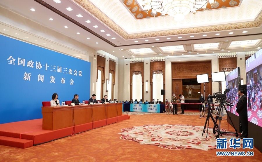 5月20日,全国政协十三届三次会议新闻发布会在北京举行,大会新闻发言人郭卫民介绍本次大会有关情况并回答中外记者提问。图为人民大会堂新闻发布厅现场。新华网 王翰林 摄